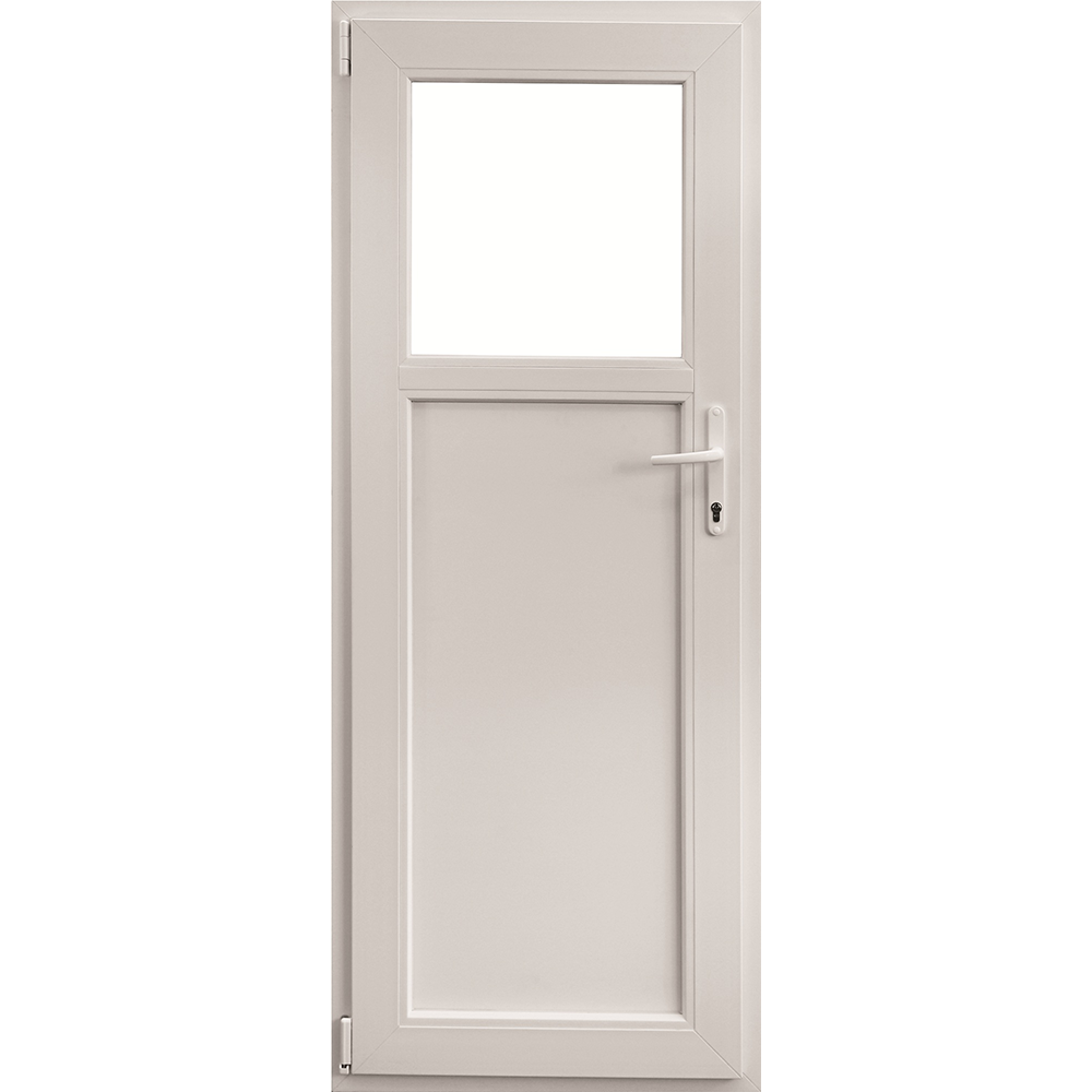 Usa secundara din profil PVC cu 5 camere cu grosimea de 60 mm si geam de 24 mm, reprezinta o solutie pentru diferite tipuri de locuinte. Dimensiunile usii sunt de 100 x 190 cm si are un singur canat. Aceasta este prevazuta cu geam in partea de sus pe o treime din suprafata si cu panel in partea de jos. Deschiderea este simpla, in partea stanga, privind din interior. Aceasta se poate folosi pentru intrarile secundare cat si pentru terase, intrucat este prevazuta cu prag din profil. Culoarea este
